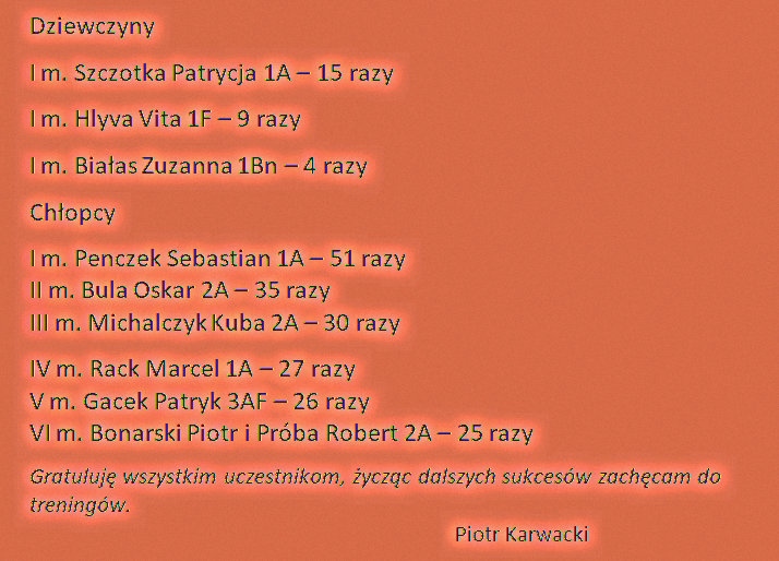 Wyniki konkursu sportowego