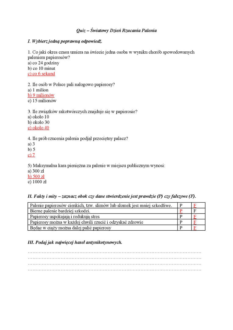 Quiz - wyniki