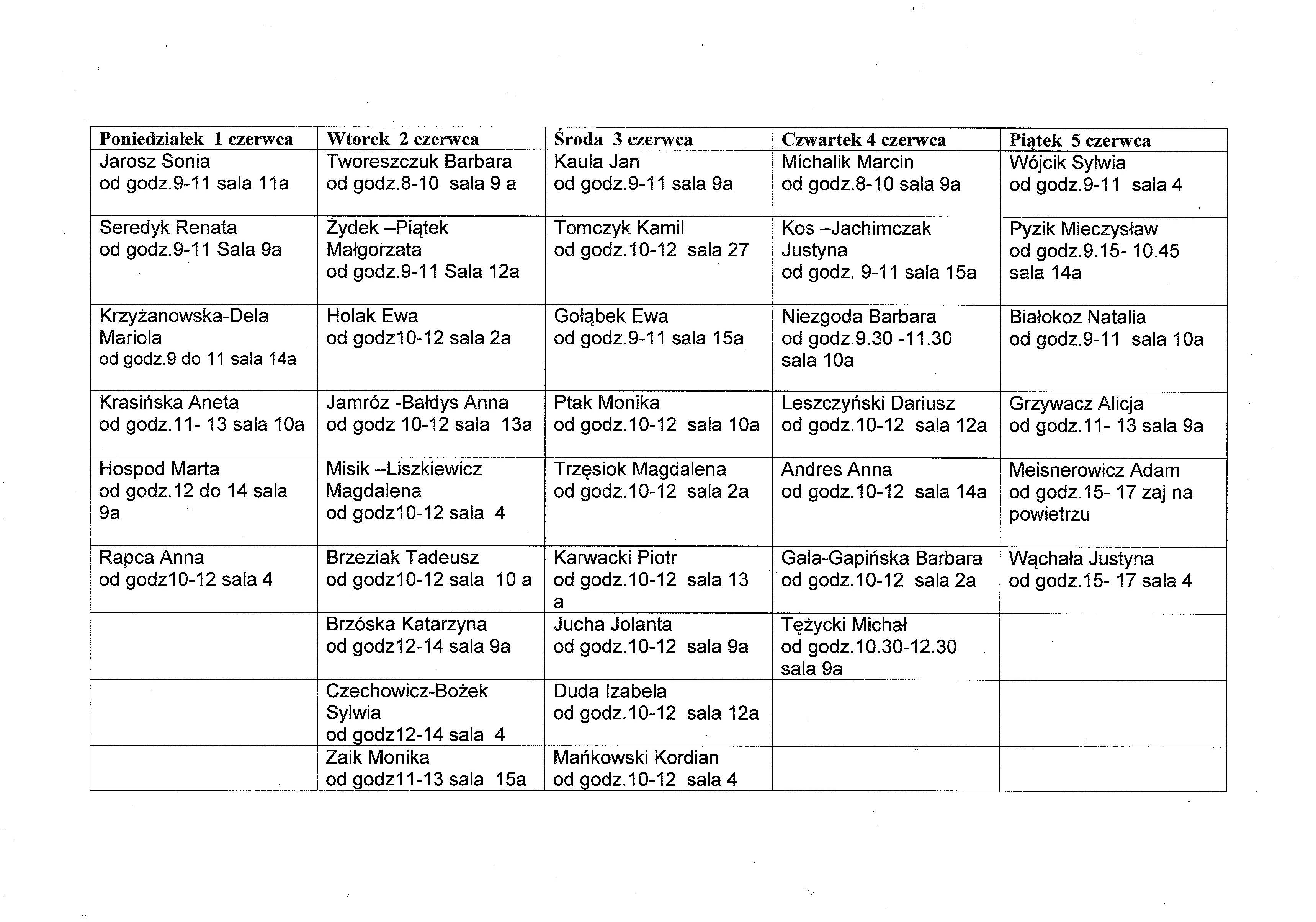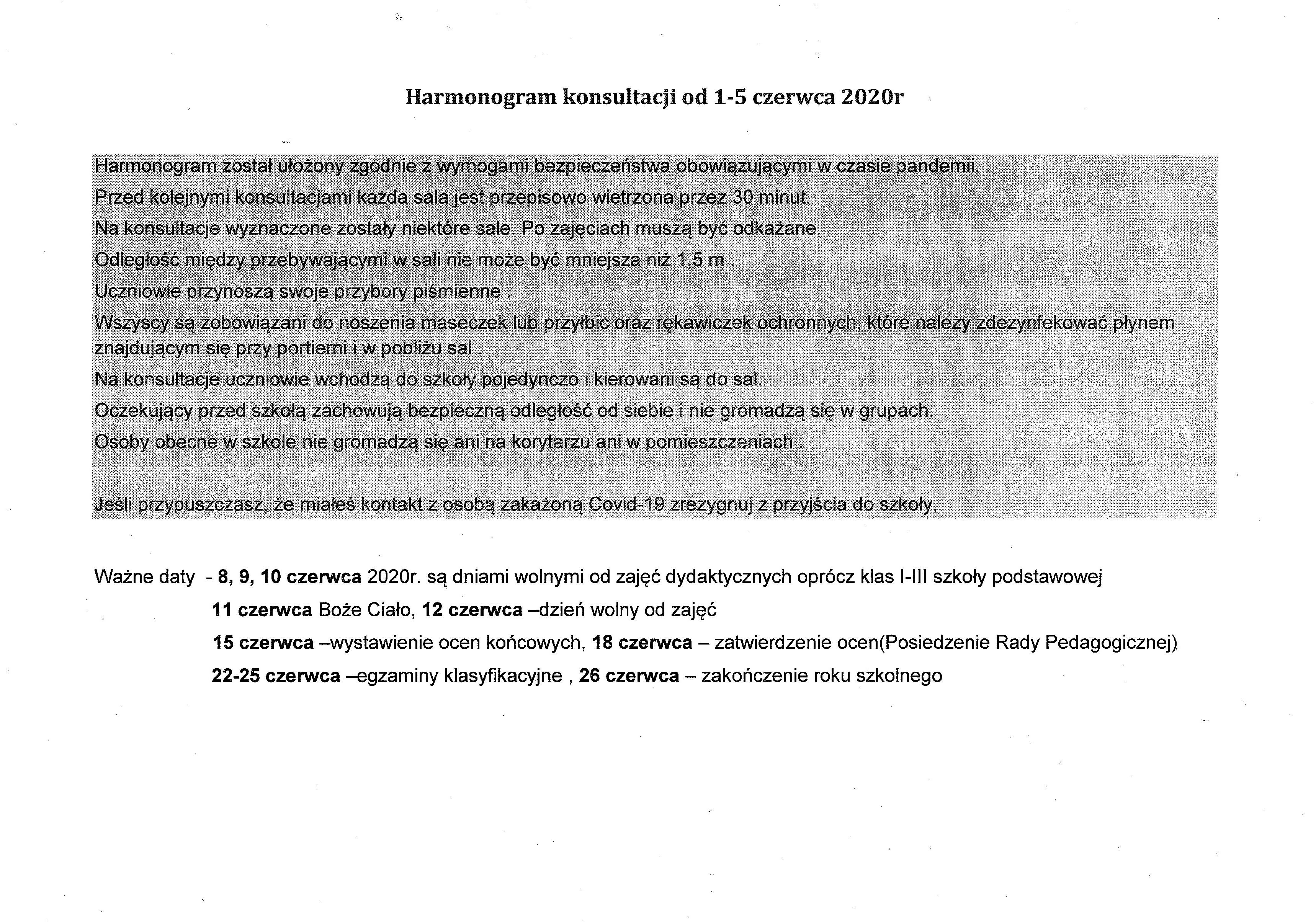 Harmonogram konsultacji
